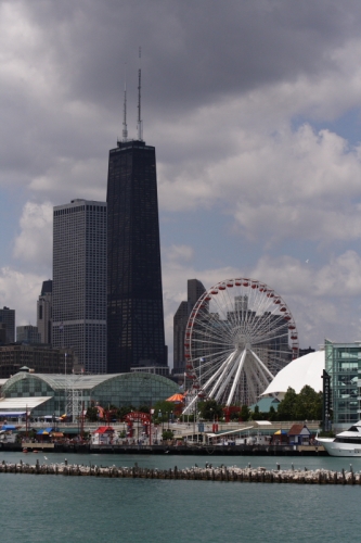 Lørdag gik vi på shopping på Magnificent Mile og tog turen op i Hancock-Tower til en lille snack og en forfriskning med udsigt ud over byen fra 96’senstyvende etage. Herlig udsigt. Vejret var dog en smule gråt, men det var ok. Om aftenen så Maria og jeg fyrværkeri fra Navy Pier – et sted med forlystelser og mad nede ved havnen. Herfra kan man også se ind over byen, hvilket er ret flot – specielt om aftenen.
